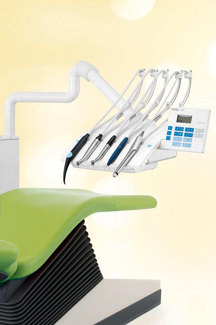 Комфортная стоматологическая установка стандартного класса с подпружиненными шлангами инструментов для эргономичного и очень легкого лечения.